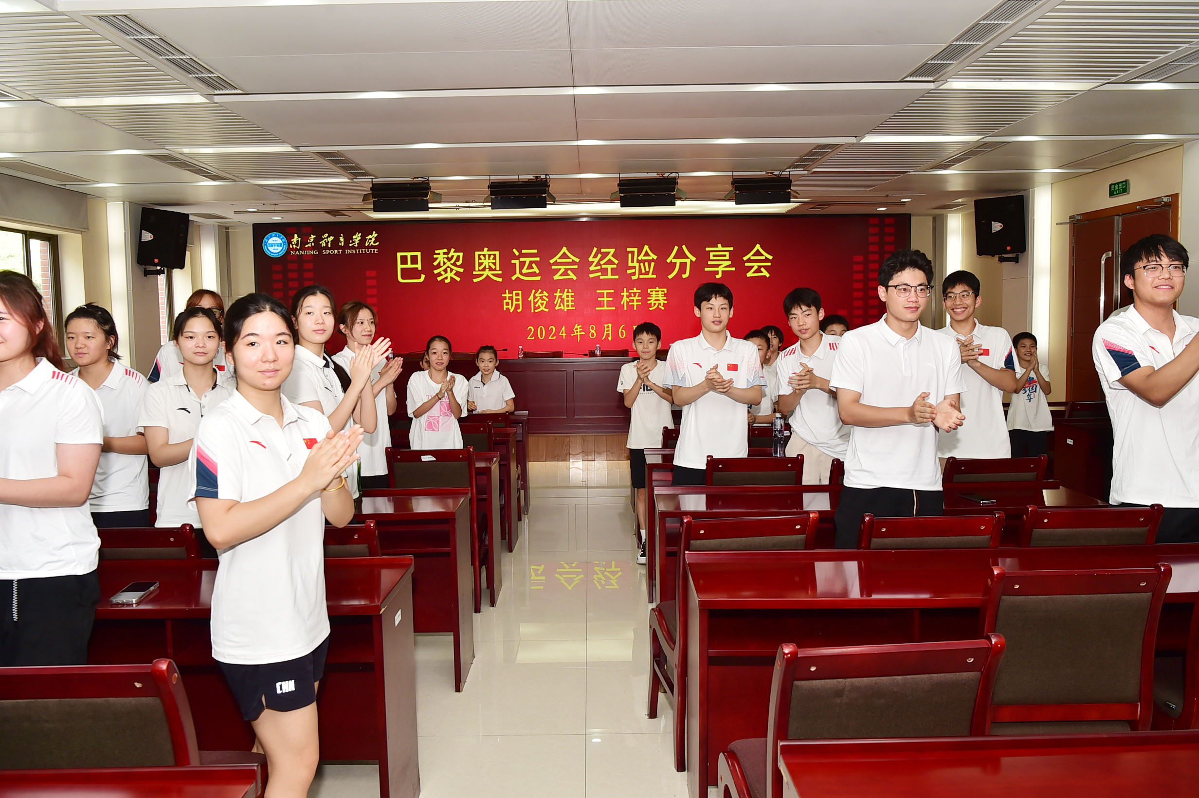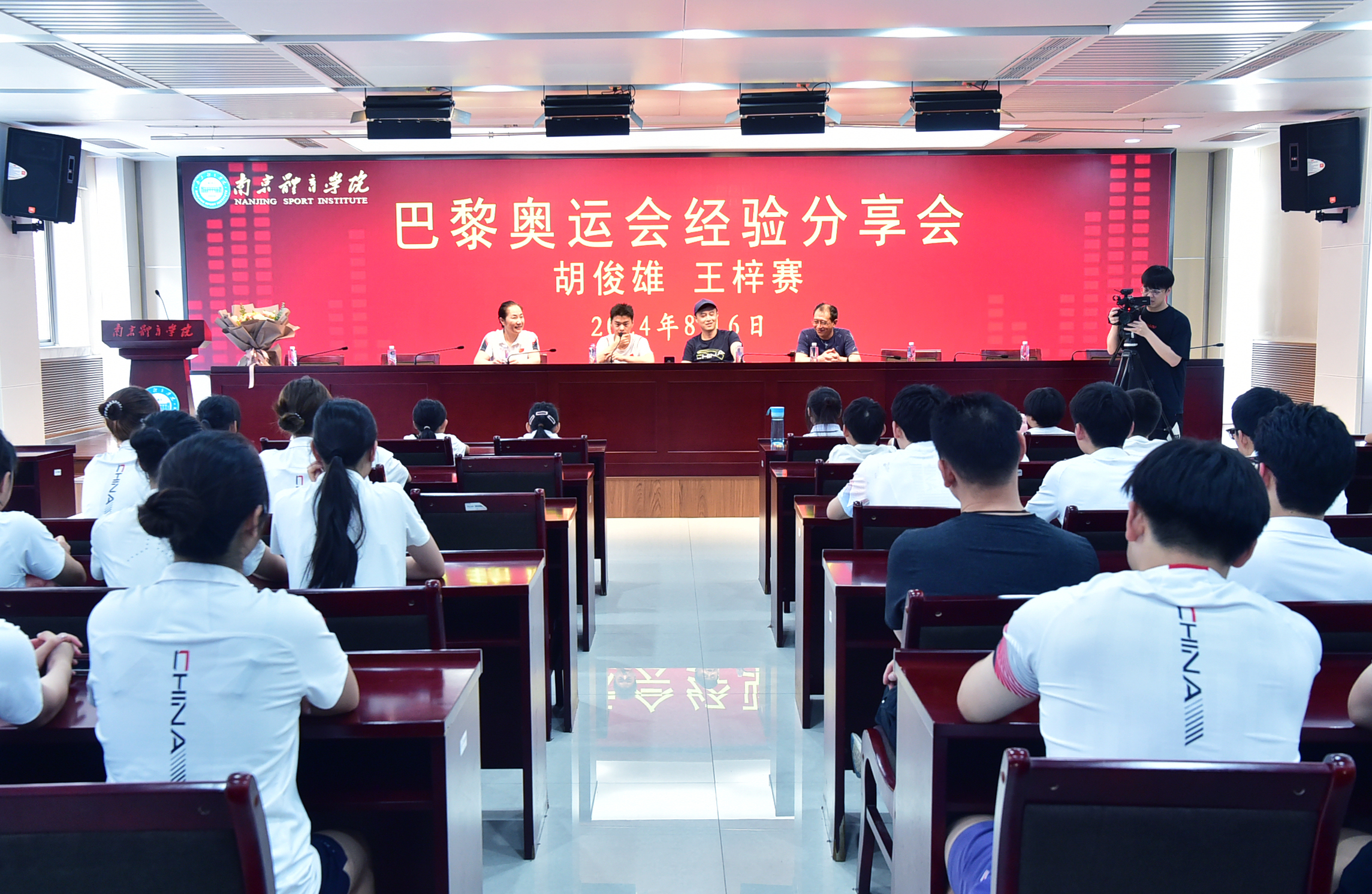 此次结束巴黎奥运会回到母校,王梓赛和教练胡俊雄第一时间在校行政办公楼101会议室为蹦床队分享奥运备战比赛经验、回答队友的热切提问。王梓赛总结自己在备战比赛中的经验有三点:一是目标要明确,一个明确的目标是克服日常训练中惰性的最大动力;二是训练要刻苦,训练是成绩的保证,只有扎实训练才能提高在比赛中的获得好成绩的概率;三是意志要坚强,训练比赛中必然有成功失败,但坚强意志是保证我们突破失败、取得成功的支柱。胡俊雄介绍了在备战巴黎奥运会过程中如何攻克困难的精彩故事,鼓励大家积极投身日常训练、科学提高训练技术,做好日常防伤防病,在比赛中保持定力,以平稳心态发挥出日常训练的最好水平。