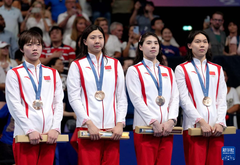 南体运动员张雨霏与队友夺得巴黎奥运会女子4×100米混合泳接力铜牌