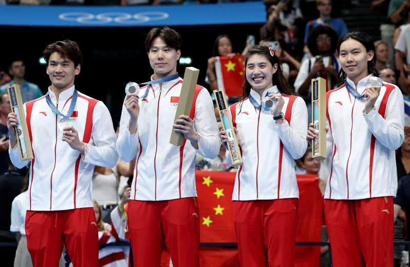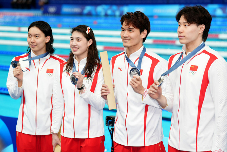 南体运动员张雨霏与队友夺得巴黎奥运会男女混合4×100米混合泳接力银牌