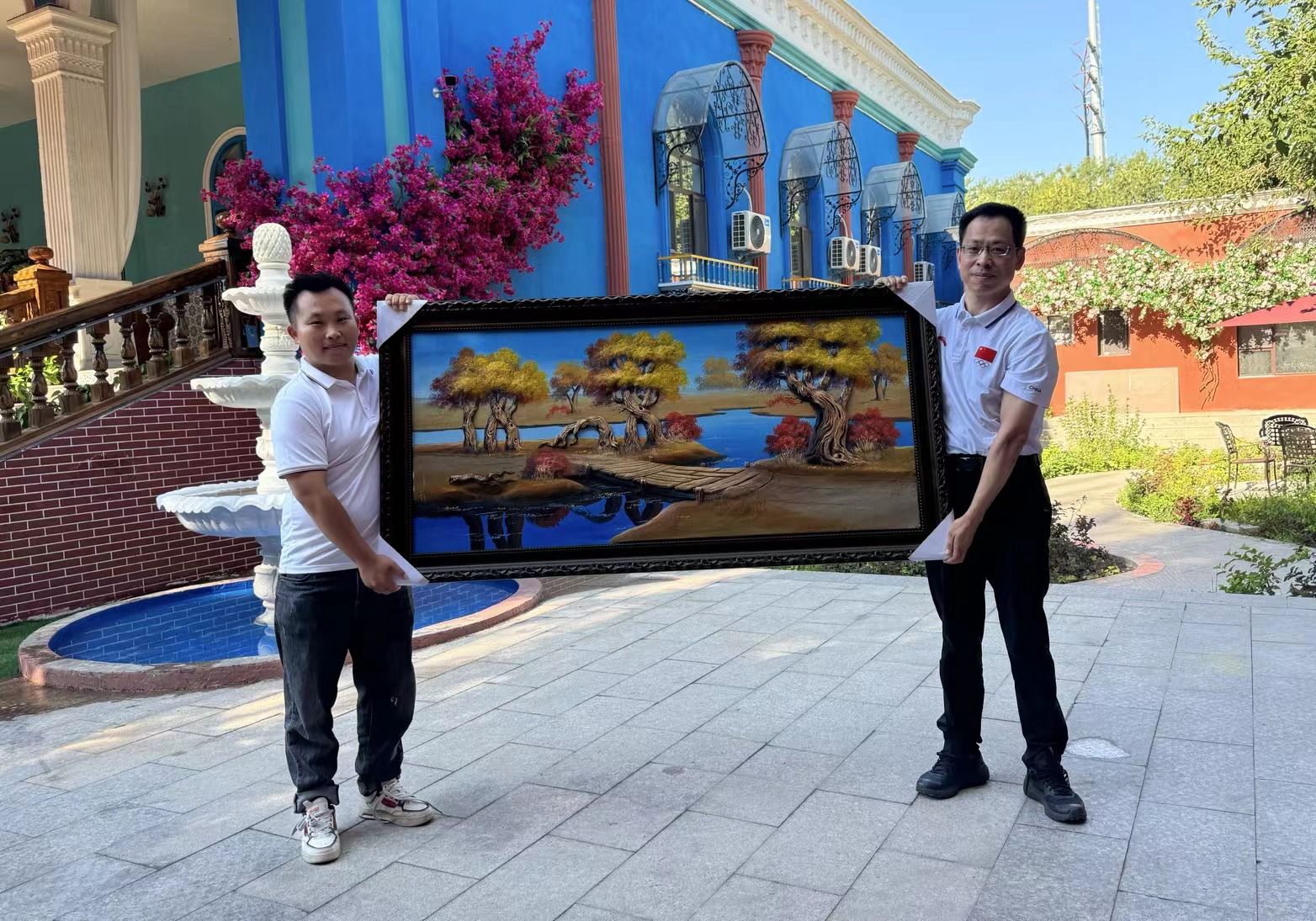唐琪寒向母校捐赠新疆非遗沙粒画