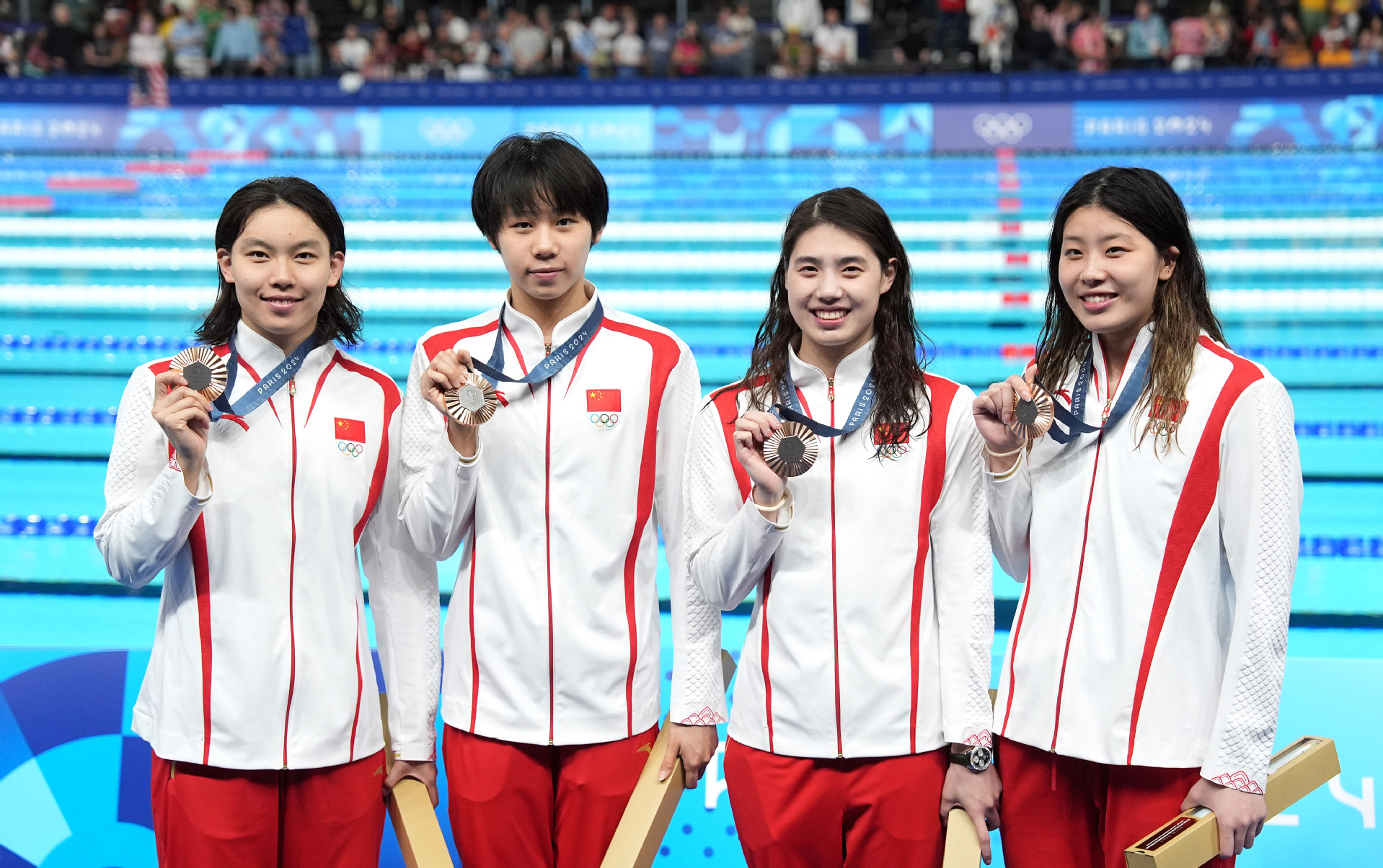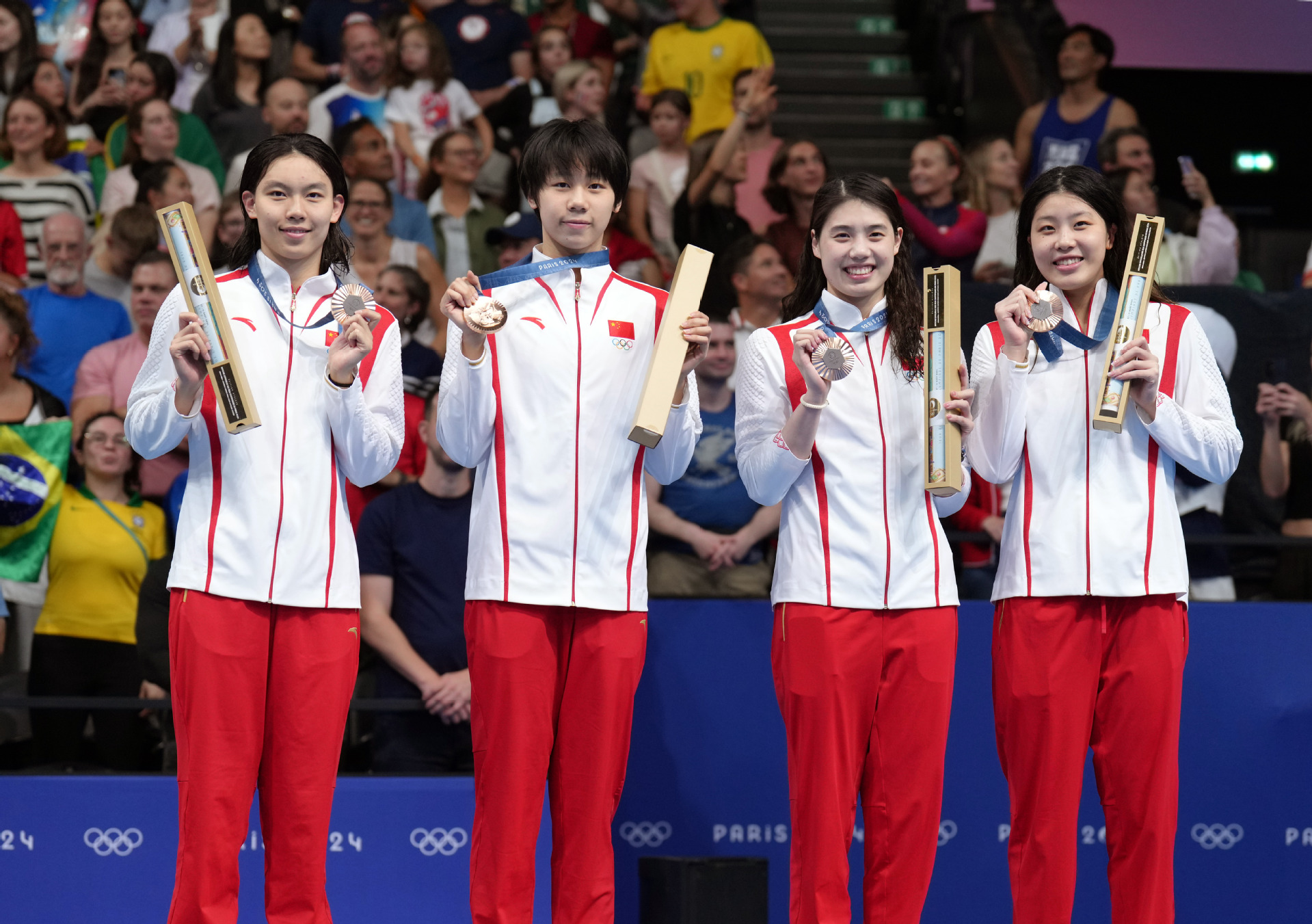 北京时间7月28日凌晨,在巴黎奥运会女子4×100米自由泳接力决赛中,南京体育学院运动员张雨霏与队友杨浚瑄、程玉洁、吴卿风组成的中国队以3分30秒30的成绩获得铜牌并打破亚洲纪录。这是中国游泳队在本届奥运会上获得的首枚奖牌。