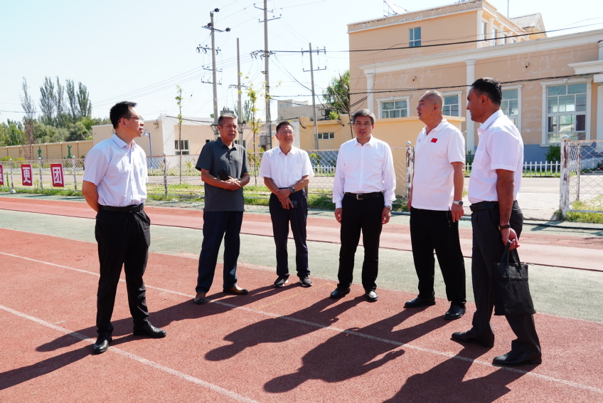 在伊犁职业技术学院体育运动学院运动场,刘红明看望慰问了支教的实践团成员,与大家亲切交谈,深入了解支教工作开展情况及取得的成效,对同学们的辛勤付出表示高度赞赏。