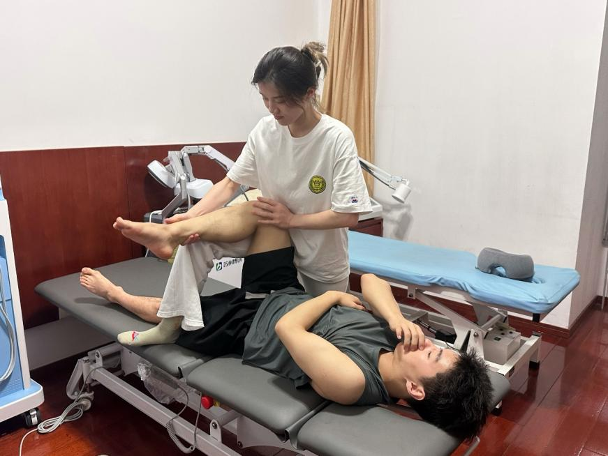 方芳为游泳奥运冠军张雨霏进行康复治疗
