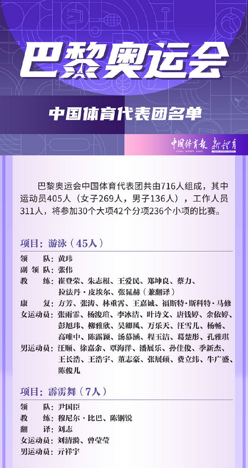 7月13日上午,巴黎奥运会中国体育代表团正式成立,我校体育科学研究院两名体能教练进入巴黎奥运会中国代表团名单。其中,方芳入选国家游泳项目康复组,陈钢锐入选国家霹雳舞项目康复组,担任体能教练。此外,体能教练陶柳入选巴黎奥运会训练营,为蹦床队提供体能康复服务。
