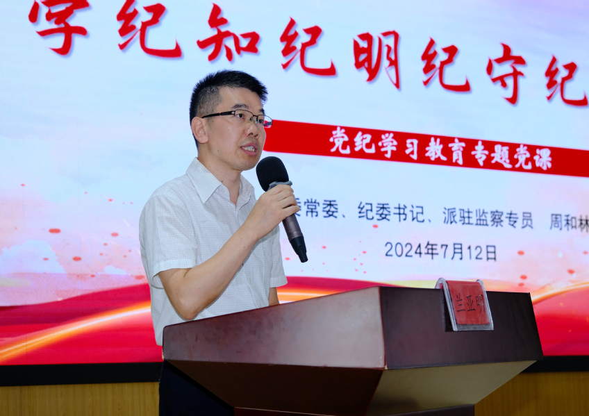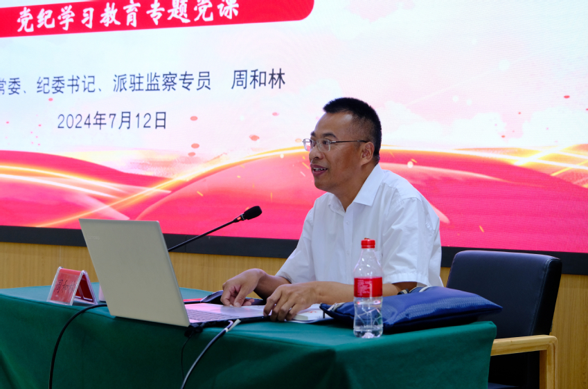 在党课上,周和林带领与会人员深入学习习近平总书记关于党的纪律建设的重要论述,以《中国共产党纪律处分条例》文本内容为基础,帮助大家准确理解学纪、知纪、明纪、守纪与执纪的内涵实质和逻辑关系,并列举违纪违法典型案例进一步突出加强纪律建设、开展党纪学习教育的重大意义。他指出,加强纪律建设是全面从严治党的治本之策,党纪学习教育是永不结业的必修课。我们要以开展党纪学习教育为契机,认真学纪、深刻知纪、透彻明纪、自觉守纪、支持执纪,始终做到忠诚干净担当。