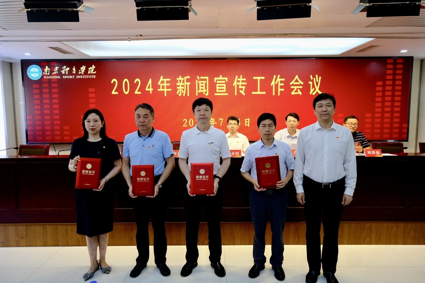 会议表彰了2023年学校新闻宣传工作先进单位、先进个人、优秀新媒体账号、优秀新闻作品和2023年学校宣传思想文化工作创新成果。在热烈的掌声中,兰亚明为新闻宣传工作先进单位、先进个人和宣传思想文化工作创新成果获奖代表颁奖。殷怀刚为优秀新媒体账号、优秀新闻作品获奖代表颁奖。