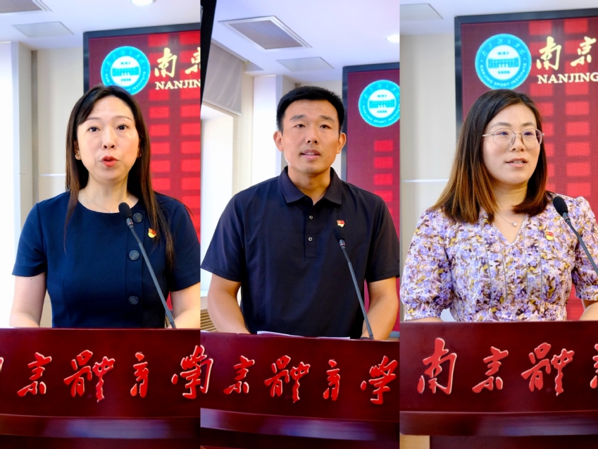 优秀新媒体账号运营单位代表运动健康学院党总支副书记阚妮妮、新闻宣传工作先进个人代表韩燕成、新闻宣传工作先进单位代表纪委办公室柳溪分别作交流发言,介绍了加强新闻宣传工作的好经验、好做法。
