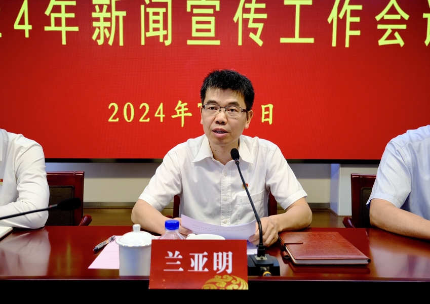 兰亚明在讲话中充分肯定了学校2023年新闻宣传工作取得的成绩,对做好2024年新闻宣传工作提出了明确要求。他强调,要坚持以习近平文化思想为指导,深入学习贯彻习近平总书记关于党的新闻舆论工作的重要论述精神,聚焦中国式现代化南体新实践,持续推进落实学校第九次党代会有关工作部署,牢牢把握意识形态工作主动权,大力推进校园媒体融合发展,生动讲好师生员工团结奋斗的故事,充分展示办学事业高质量发展取得的成就,扎实推进学校新闻宣传工作再上新台阶。为建设特色鲜明、走在前列的高水平体育大学提供坚强思想保证、强大精神动力和有利发展氛围。要围绕学校改革发展大局,切实做好新闻信息采编、宣传阵地建设、改进新闻文风、对外新闻宣传、网络舆情监测应对等五项重点工作,着力提升新闻宣传工作质效。要切实加强党对学校新闻宣传工作的全面领导,坚持党管宣传、党管意识形态、党管媒体,持续构建党委领导、宣传部门牵头、各部门协作、广大师生参与的“大宣传”工作格局。要不断完善新闻宣传工作督导考评和培训交流机制、党委宣传部与专业院系共建校园媒体的工作机制,大力建设一支政治过硬、业务精湛的师生专兼职新闻宣传工作队伍,有力推动新闻宣传各项工作落地见效。