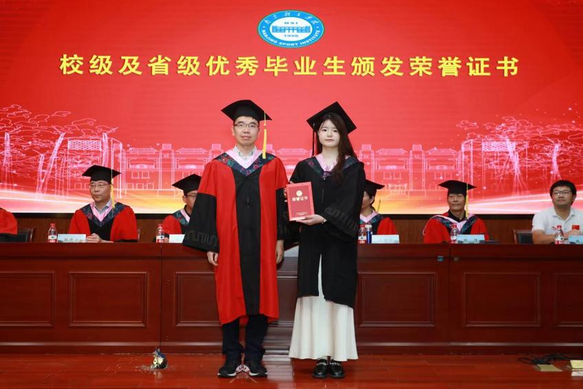 校党委常委、副校长肖爱华为南京体育学院优秀毕业生颁发荣誉证书