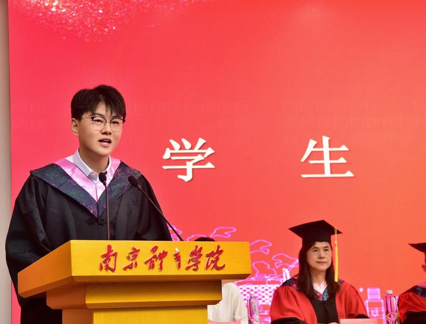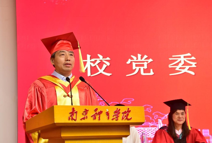 伴随着热烈的掌声,刘红明代表学校向全体毕业生送上最美好的祝愿,向培养和呵护同学们成长的老师和家长们致以崇高的敬意。他对全体毕业生提出三点期望:一是无论走到哪里,都要勇于扛起责任、积极担当作为。希望同学们始终坚持将个人的前途命运与党和国家的事业紧密相连,时刻胸怀“国之大者”,在实现中华民族伟大复兴的新征程上,主动扛起肩负的责任。二是无论路有多远,都要坚持勤学善思、不断增强本领。始终保持求知的热情,永葆思想的活力。三是无论分别多久,都要记住母校传统、传承母校精神。要牢记“严和朴实”的校训精神,在未来的工作和生活中,继续发扬南体精神。