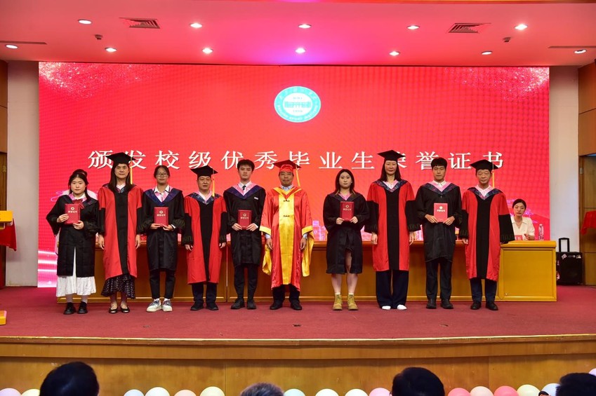 典礼上,刘红明为省级优秀毕业生李政颁发了荣誉证书,并与肖爱华、李龙、汤强、沈鹤军共同为毕业生代表、校级优秀毕业生颁发毕业证书和荣誉证书。在庄严的拨穗仪式中,刘红明、肖爱华、李龙、汤强、沈鹤军为全体毕业生拨穗正冠,颁发学位证书。