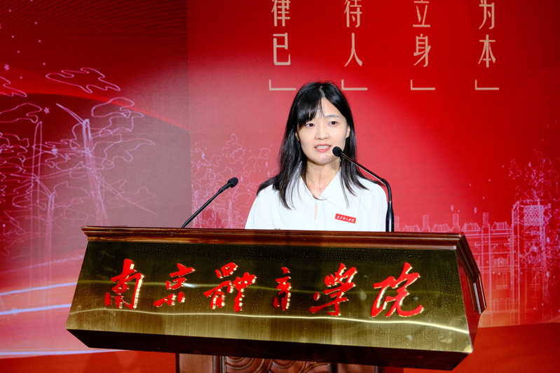 中国海军辽宁舰航母首位女操舵兵、和平使命金质奖章获得者、校友代表徐玲回顾了她精彩的求学时光和军旅生涯。她表示,正是南体培养了她顽强拼搏、勇攀高峰的坚强意志,激励着她执着追梦、永不停步。她和同学们分享了五句话: 要永远保持对知识的渴望,要勇敢地追寻自己的梦想,要学会与人合作,要有一颗坚韧的心,不忘母校培养之恩。她鼓励同学们大胆闯荡,奋力拼搏,书写属于自己的精彩篇章。
