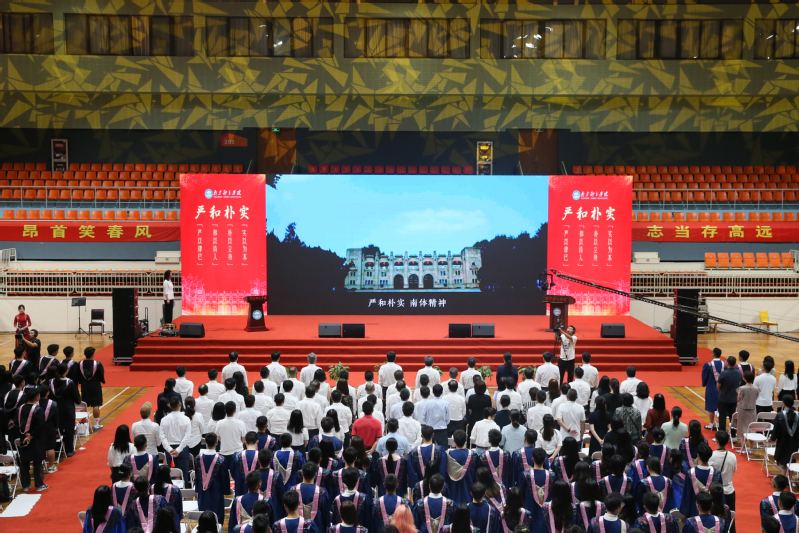 青衿之志,履践致远。云程发轫,万里可期。学校各部门、各岗位的老师、工作人员为同学们送上了衷心的祝福。“钟山巍巍,是你坚挺的脊梁。灵谷深深,是你宽广的胸膛。……”最后,现场师生齐唱《南体之歌》。在嘹亮的歌声中,毕业典礼圆满结束。