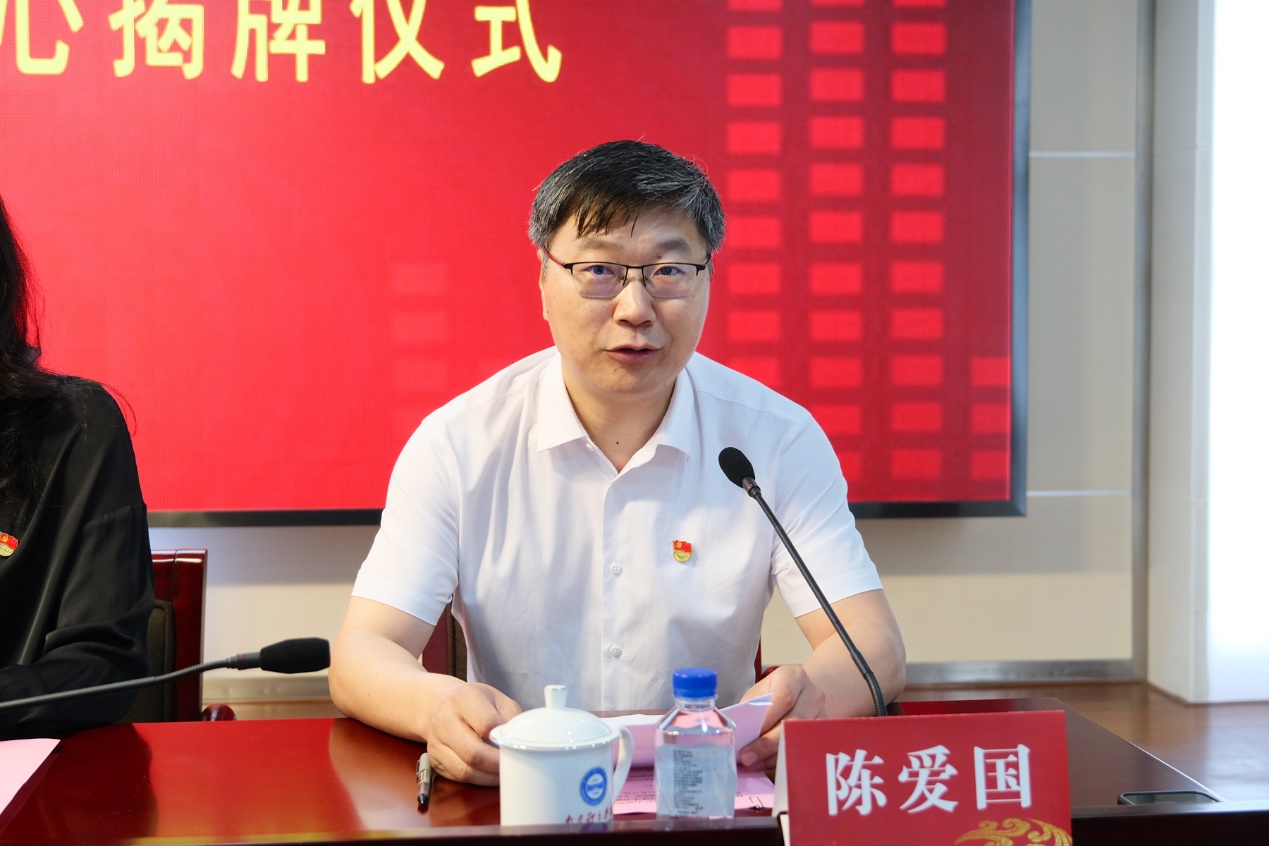 校党委副书记、校长杨国庆为陈爱国颁发中心主任聘书