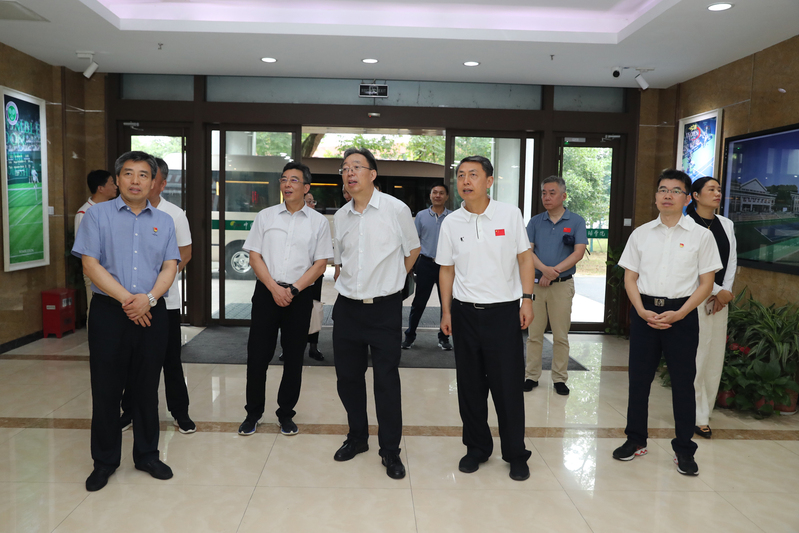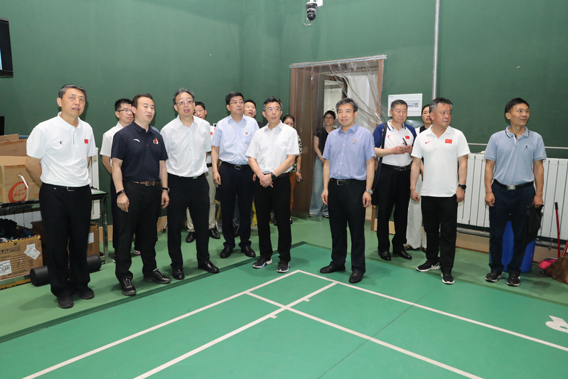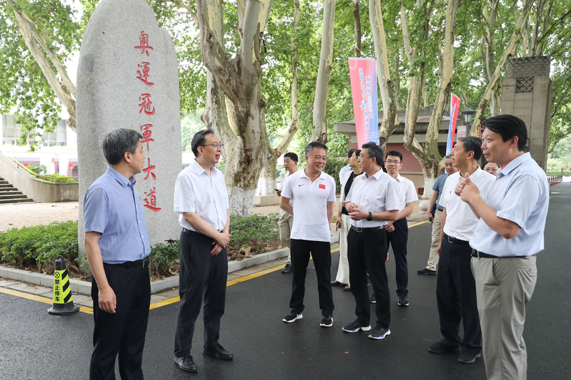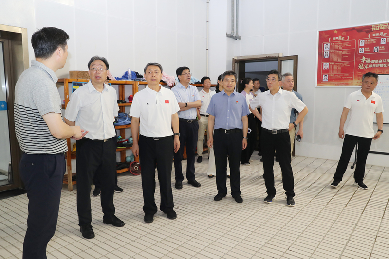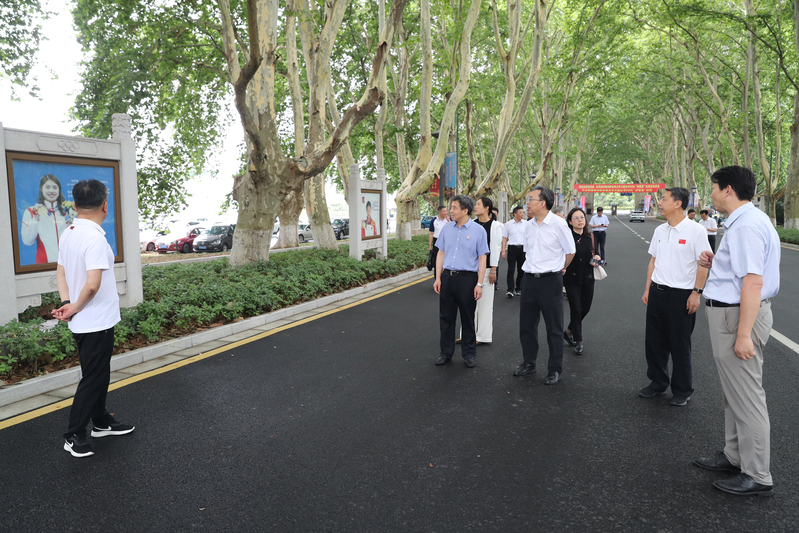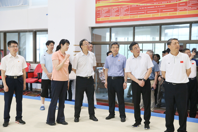 葛道凯一行参观了奥运冠军大道、世界冠军之路,考察了体操学院、击剑学院、乒羽学院、游泳学院和网球学院,详细了解了我校竞技体育工作主要成绩和运动队训练备战等情况并给予充分肯定。