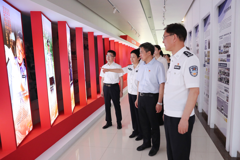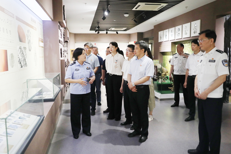 在江苏警官学院,刘红明一行聆听了夏存喜关于江苏警官学院党纪学习教育好做法、好经验的介绍,观摩了该校马克思主义学院吴建辉教授的党纪学习教育微党课,观看了江苏警官学院宣传片《回响》,参观了近代警察史博物馆、功模校友事迹展、南京中华指纹博物馆、艺术思政主题书画摄影展。