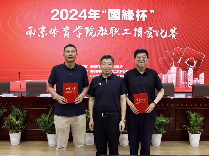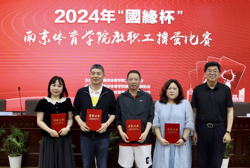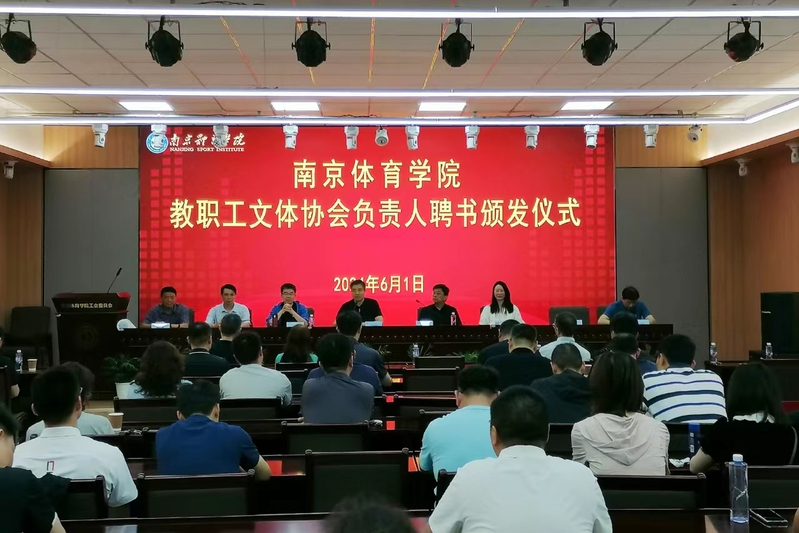 6月1日下午,校工会在职工之家多功能厅举行南京体育学院教职工文体协会负责人聘书颁发仪式暨2024年“国缘杯”南京体育学院教职工掼蛋比赛。党委书记刘红明,党委副书记、校长杨国庆,校领导兰亚明、肖爱华和党委常委许立俊、王猛、殷怀刚出席活动。工会主席张健主持活动。