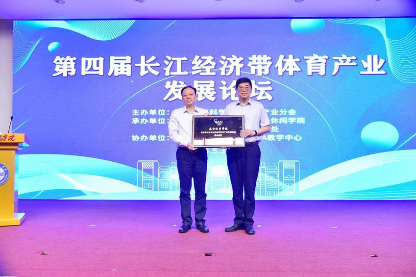 中国体育科学学会体育产业分会为南京体育学院授“承办会议”纪念牌
