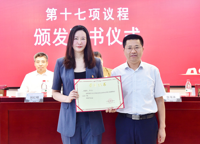 会上,张海涛向肖爱华颁发了省击剑运动协会第七届理事会会长聘书。肖爱华向朱小兰、沈朝阳、孙海平、吴巍、杨铭、李易真、张莹颁发了第七届理事会副会长聘书,向李哲峰颁发了第七届理事会秘书长聘书。