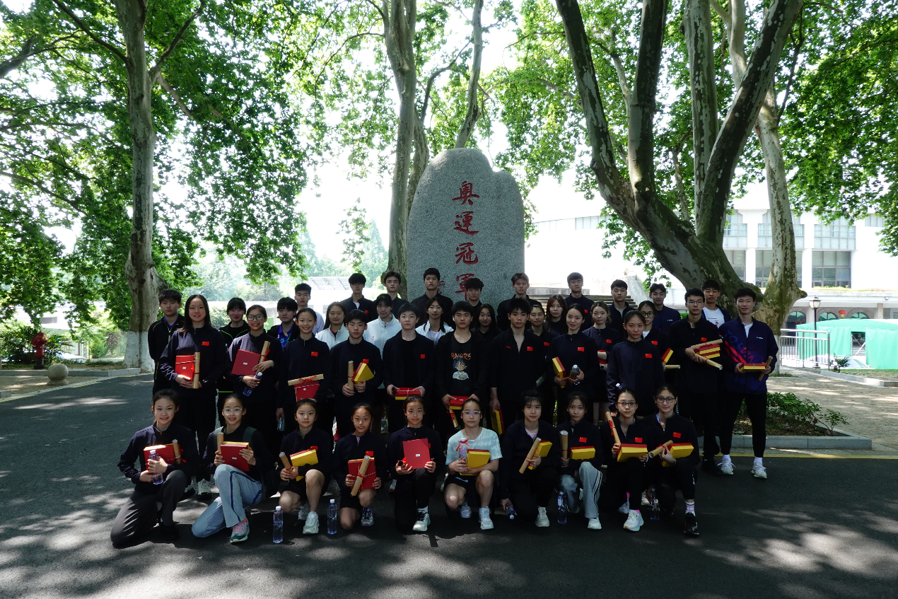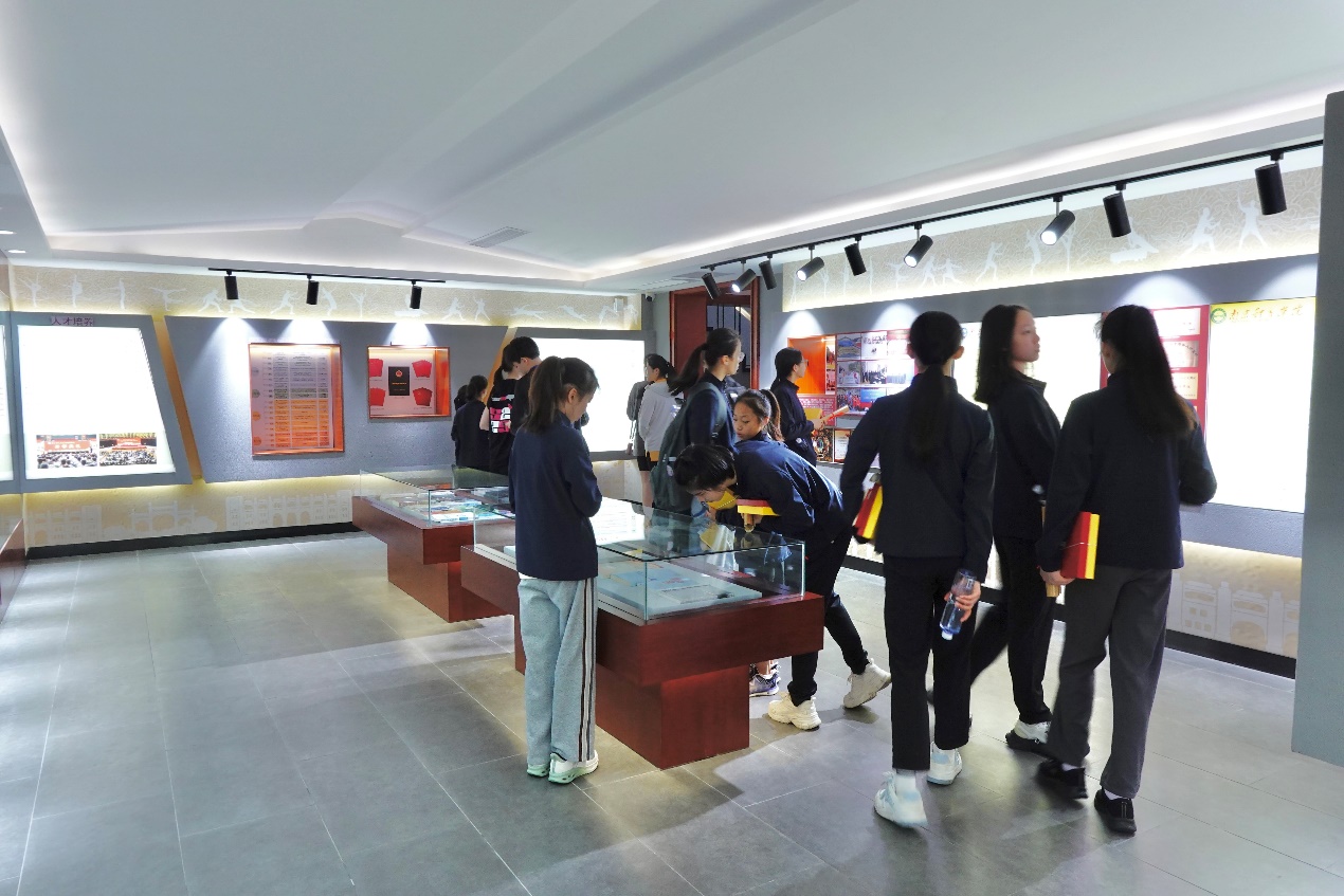 会后,新进运动员在奥运冠军大道合影并参观校史陈列馆。