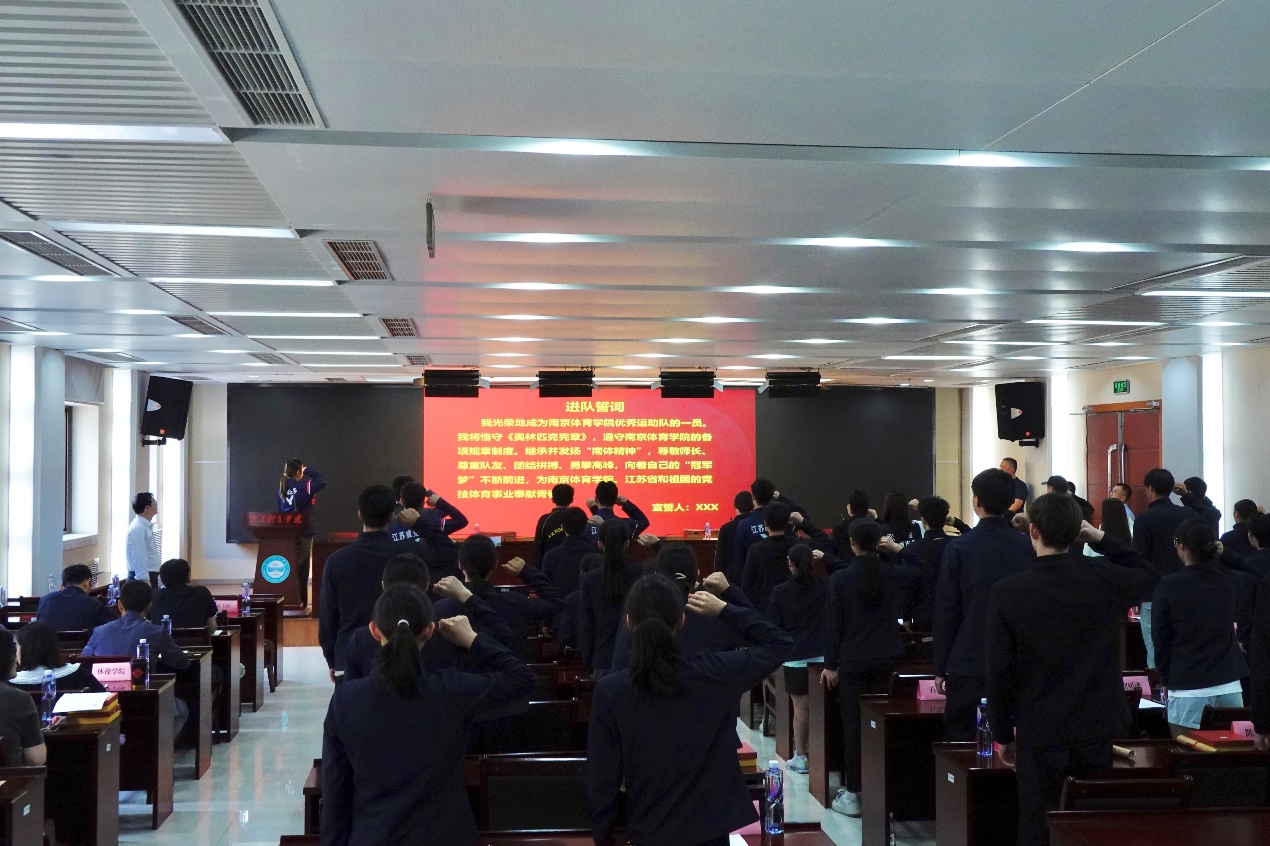 5月24日上午,我校在行政办公楼101会议室举行优秀运动队2023年新进运动员集体进队仪式。