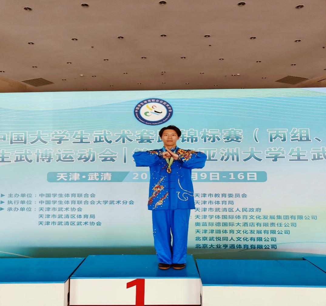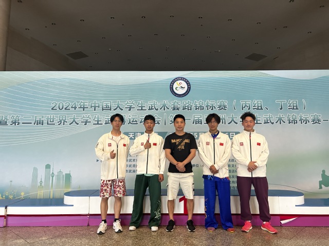 我院武术系伊亚鹏、柏宇航、吴俊男、徐钟雷四名学生在领队系主任刘靖、教练张道鑫、陈芳的带领下参加了本次比赛。在近一周的激烈角逐中荣获一金以及多项四至八名的成绩,柏宇航同学获得道德风尚奖。在比赛过程中,同学们不仅展示了高超的武术技能,更体现了南京体育学院武术系学生坚韧不拔、勇往直前的精神风貌。