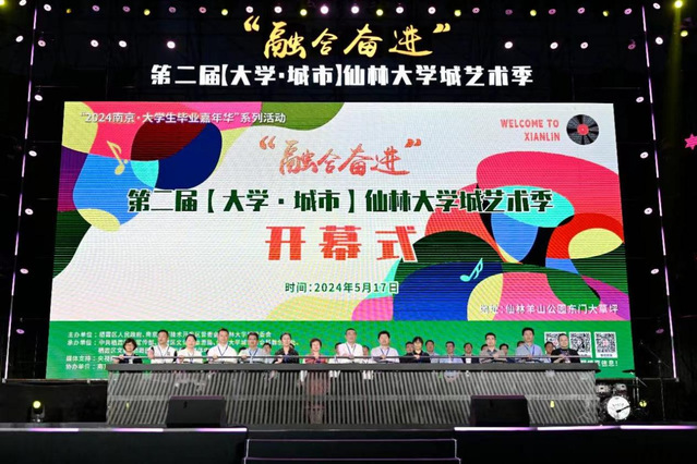 2024年5月17日,“融合奋进”第二届“大学·城市”仙林大学城艺术季在南京市栖霞区羊山公园隆重拉开帷幕。本次活动由栖霞区人民政府、南京经济技术开发区管委会、仙林大学城管委会主办,旨在“校地联袂”,打造丰富多彩的艺术盛宴和“美美与共”的栖霞公共文化的艺术生态。