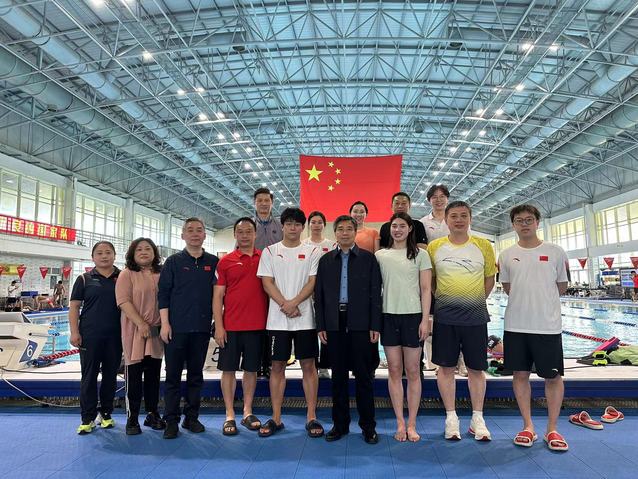 当下距离巴黎奥运会开幕仅有两个多月时间,在国家队备战的关键时期,5月16日,党委书记刘红明,党委常委、副校长刘健带领游泳学院院长王伟新、后勤处副处长杨宁欣和游泳队负责人前往上海东方绿舟训练基地看望慰问正在抓紧备战巴黎奥运会的我校国家游泳队运动员、教练员及科医保障团队。