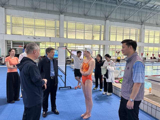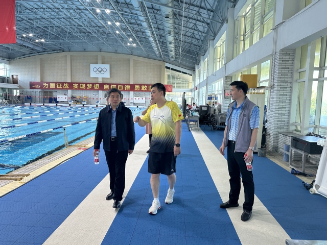 刘红明一行来到游泳项目训练场地,观摩了国家游泳队训练情况,并与国家体育总局游泳运动管理中心有关领导、张雨霏国家队主带教练崔登荣和游泳项目国家队领队进行了沟通交流,详细了解运动员的备战情况。随后,刘红明与我校游泳运动员张雨霏、董志豪,教练员黄光裕、季志祥以及科医保障人员进行了亲切交谈,仔细询问了他们近期的训练备战情况、身体状况、医疗保障、困难和需求等,并代表学校表达了对大家的亲切关怀。