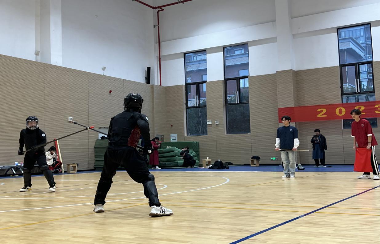 武术系学生在执裁第一届国际大枪竞赛(2023年)