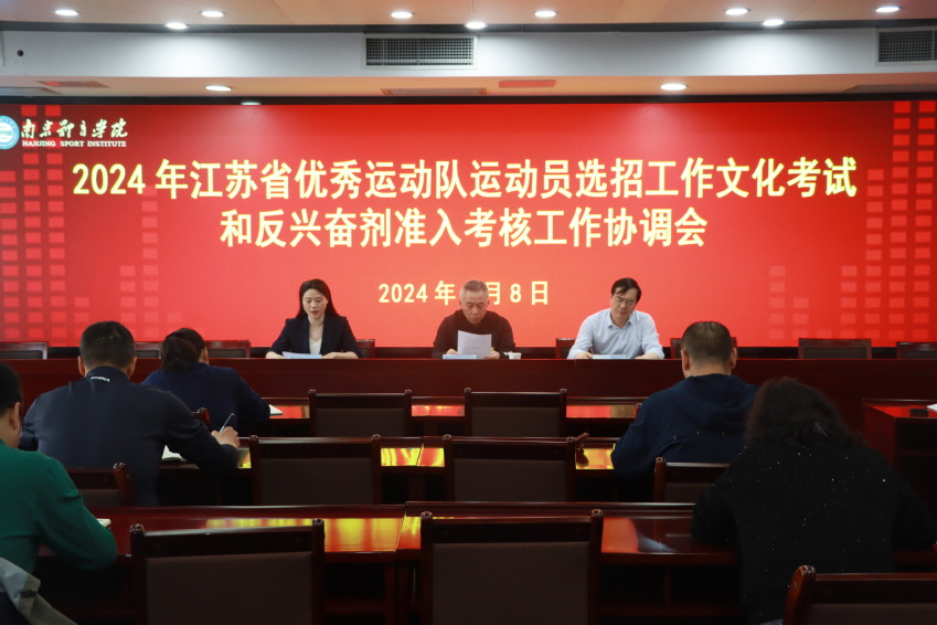 5月8日下午14:30,我校在行政楼201会议室召开2024年江苏省优秀运动队运动员选招工作文化考试和反兴奋剂准入考核工作协调会。校党委常委、副校长刘健出席会议,校纪委(派驻监察专员办公室)、训练处、附属学校、后勤处、运动康复医院、保卫处、信息化建设处等有关职能部门领导及工作人员参加会议。会议由附属学校党总支书记、校长吴建华主持。