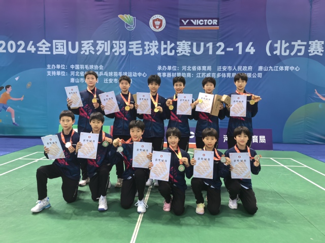 4月28日,2024年全国U系列羽毛球比赛U12-14(北方赛区)在河北唐山落下帷幕,乒羽学院羽毛球队共获得8金7银5铜的优异成绩。