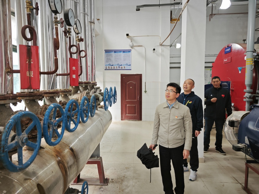 校领导在锅炉房检查