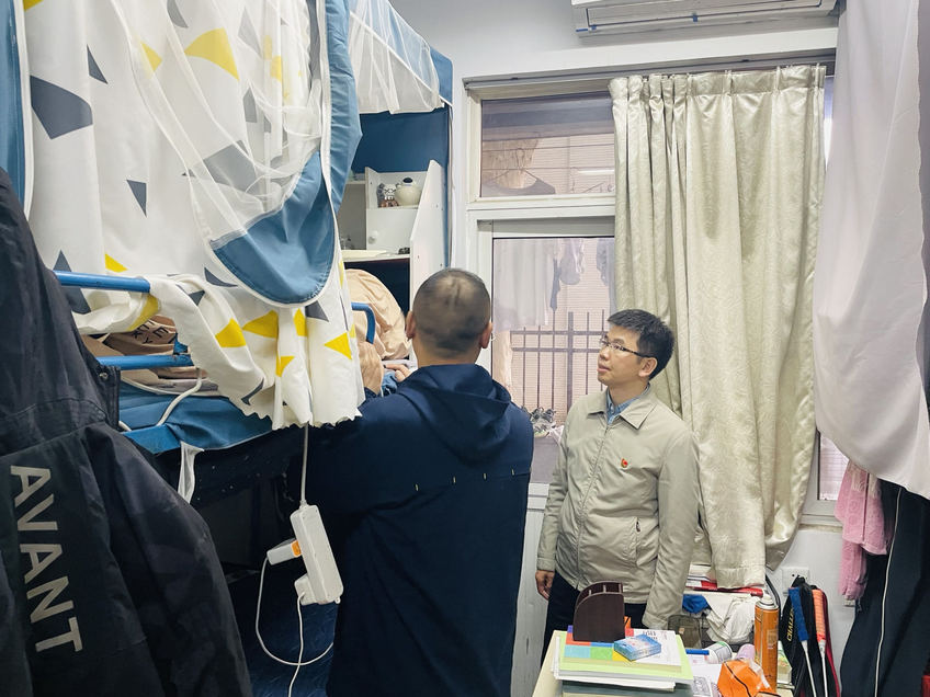 校领导在大学生宿舍检查