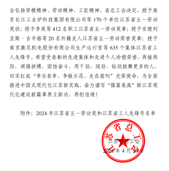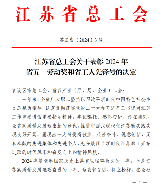 日前,江苏省总工会公布了《江苏省总工会关于表彰2024 年省五一劳动奖和省工人先锋号的决定》,我校体育教育与人文学院体育教育系被省工会授予江苏省工人先锋号。