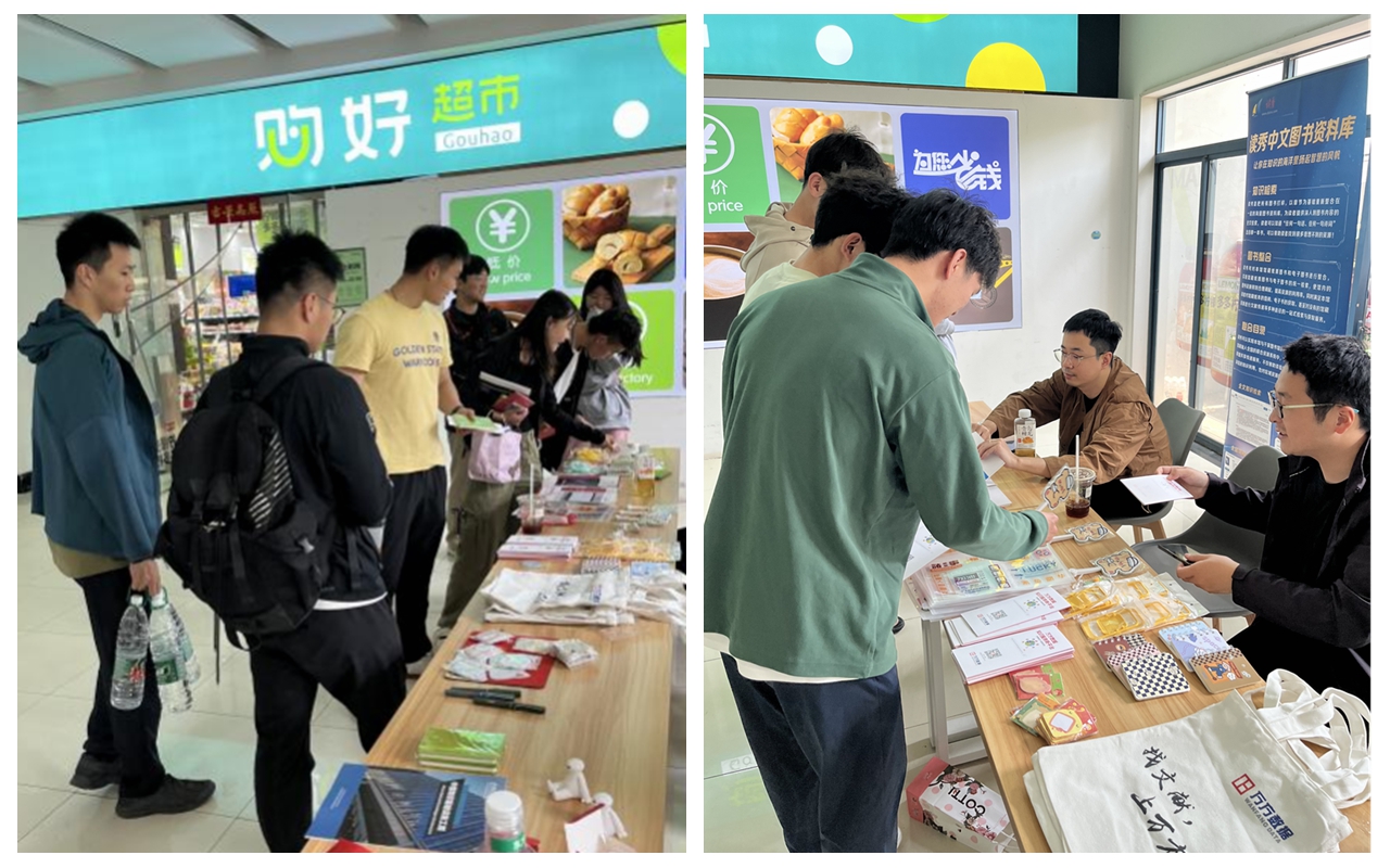 中国知网、万方数据库、超星学习通、百度文库等电子数据库通过宣传展架、宣传册、关注公众号、现场解答读者咨询等形式,宣传推广电子数据库资源。图书馆工作人员和各数据库商针对读者使用电子文献过程中遇到的问题进行耐心解答,并提供趣味小礼品。