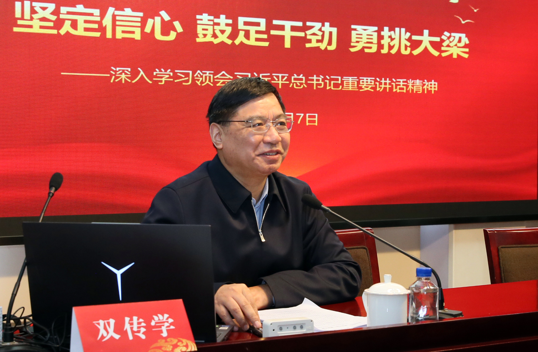 会上,双传学以《坚定信心 鼓足干劲 勇挑大梁——深入学习领会习近平总书记重要讲话精神》为题,就学习贯彻习近平总书记对江苏工作的重要讲话精神,以高质量党建引领学校事业高质量发展为主题作了一场精彩的报告。报告分为六个部分:一、习近平总书记与代表互动情况;二、深刻理解和把握习近平总书记重要讲话精神;三、进一步明确江苏的定位和责任;四、着力抓好总书记强调的五项重点工作;五、切实扛起“坚定信心、鼓足干劲、勇挑大梁”的重大责任;六、学习好贯彻好落实好总书记重要讲话精神。报告高屋建瓴、视野宏阔、思想深邃、讲解透彻,既有对习近平总书记重要讲话精神的深刻解读,又能紧密结合工作实际并紧扣本次学习主题,对学校深入学习领会习近平总书记重要讲话精神,推动党建创新赋能学校高质量发展具有十分重要的指导意义。