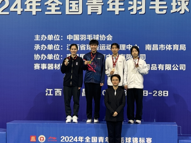 3月28日下午,2024年全国青年羽毛球锦标赛在江西南昌国际体育中心体育馆结束了甲组女单的决赛,乒羽学院羽毛球队运动员徐文婧战胜上海队罗盛萱夺得甲组女单冠军。
