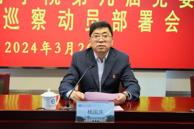 杨国庆就贯彻落实本次会议精神,强调三点要求:一要深化政治认识,保持定力不动摇。要以全面加强政治建设为统领,以深入开展巡察工作为契机,强化上下联动,推动整改落实与学校事业发展相结合,进一步提升基层党组织管党治党能力水平,持续推动全面从严治党向纵深发展。二要把准监督重点,履职尽责不含糊。要认真落实巡察工作方案的有关要求,深入查找被巡察党组织有没有“慢半拍”“落差大”“越边界”等问题,边查边改、立行立改,确保巡察工作“开好方”“抓好药”的作用得到充分发挥。三要强化自身建设,遵规守纪不懈怠。各巡察组要始终保持敬畏之心,严格遵守政治纪律、廉洁纪律、保密纪律,严格按照制度和授权开展工作,严守职责边界,坚决杜绝以巡谋私、超越权限、跑风漏气等“灯下黑”问题,切实以好作风树立好形象。