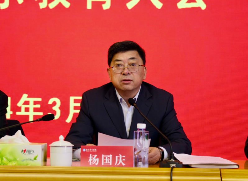 杨国庆在主持会议时传达学习了全省教育系统全面从严治党工作会议精神并就进一步贯彻落实本次会议精神,切实推进办学治校各项事业高质量发展,提出了三点要求。一是提高政治站位,强化思想引领。全校各级党组织要切实提高政治站位,凝聚思想共识,扎实将上级重要会议精神和学校会议部署传达到位,教育引导党员干部自觉成为全面从严治党工作的践行者、推动者和先行者,充分发挥示范引领作用,确保在工作要求上不搞变通、不打折扣,全校上下闻令而动、一体推进。二是营造清朗生态,赋能办学发展。要坚持立德树人,厚植笃学求知、善思力行的优良学风,建好用好“三全育人”制度体系,不断改进思政工作,全面提升人才培养质量。要坚持荣誉至上,巩固拼搏奋进、勇攀高峰的优良训风,落细落实训练竞赛管理和监督举措,把牢人才选拔、办队治训、赛风赛纪和反兴奋剂等重点环节。要坚持以生为本,倡导爱岗敬业、教学相长的师德师风,筑牢师德底线、强化学术道德、涵养教育家精神,打造善于传道授业、精于科研创新的教师队伍。要坚持勤勉奉公,弘扬敢于担当、善于作为的工作作风,在各方面重点攻坚任务上彰显更强责任担当。三是落实“一岗双责”,狠抓贯彻落实。全校各级党组织和广大党员干部要坚决扛起管党治党的政治责任,把习近平新时代中国特色社会主义思想转化为坚定理想、锤炼党性、指导实践、办学治校的强大动能。要切实履行“一岗双责”,将党的建设与教育教学、训练备战等各项工作同谋划、同部署、同推进、同考核。要全面优化“3+1”督查工作机制,切实强化结果运用,督促党员干部带头履职尽责,为学校2024年度各项工作任务的圆满完成提供坚强有力的保障。