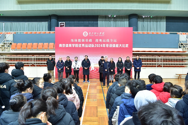 为进一步全面对标国家队,提高训练备战质量,检验冬训成果,2月2日,我校举行“练体能强基础,迎奥运战全运”——南京体育学院优秀运动队2024年冬训体能大比武活动。校党委书记刘红明现场观看了体能大比武,副校长刘健出席活动开幕式并致辞。省体育局竞体处有关负责同志、全省各训练单位部分教练员指导、观摩了大比武活动。各竞技体育二级学院党政负责人、学训融合中心负责人以及训练处全体人员、全体教练员、训练管理干部、体能教练和队医参加了活动,各优秀运动队全体全运会备战运动员、技巧队全体一二线运动员共260余名运动员参加了大比武。