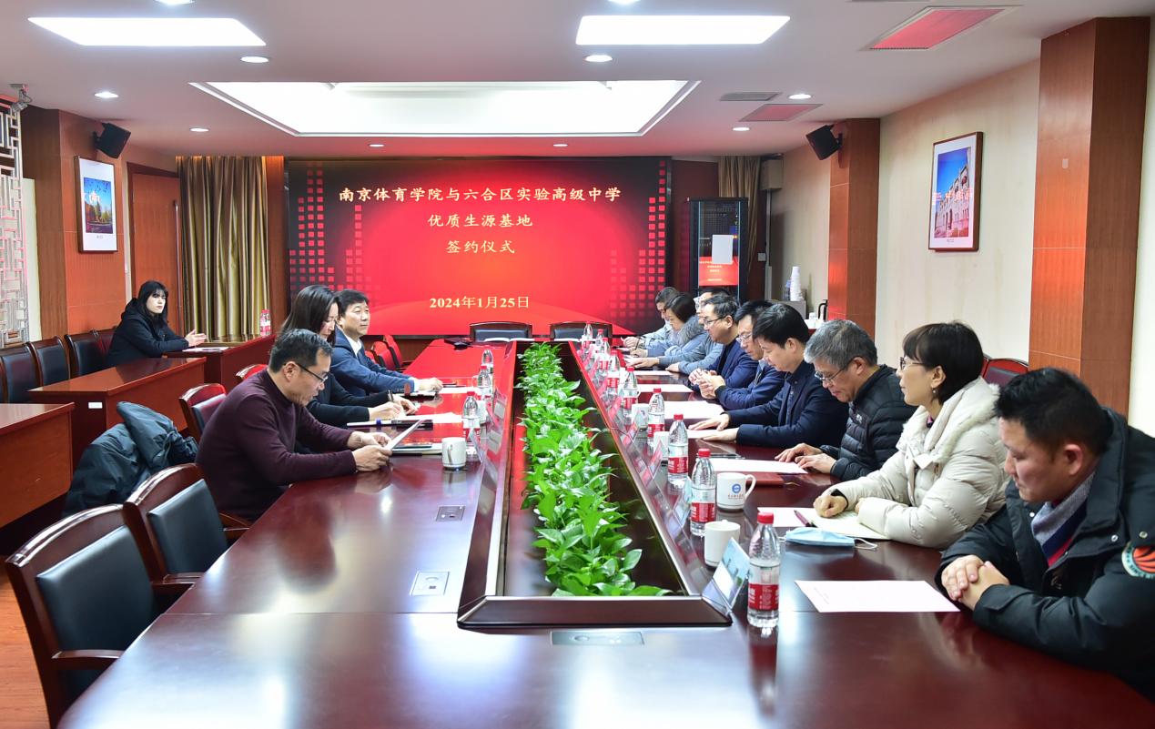 为进一步探索优秀生源衔接培养创新合作模式,提高人才培养质量,实现高校与中学协同发展。2024年1月25日下午,南京体育学院与六合区实验高级中学优质生源基地签约仪式在行政楼301会议室举行。校党委常委、副校长肖爱华出席签约仪式并讲话。校党委常委、组织部部长、学工部部长殷怀刚、南京市教育局副局长田家英、南京市教育局一级调研员卢普新、南京市教育局体卫艺处处长叶勇、六合区政协副主席、区教育局局长张弛、六合区教育工委书记陈旭东、六合区实验高级中学校长陆敏、副校长杨莉莉等一同参加了签约仪式。签约仪式由校党委学工部副部长郁东主持。
