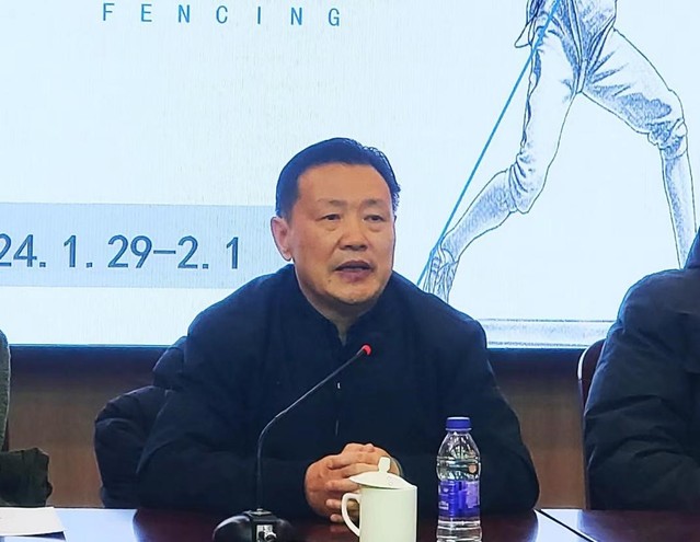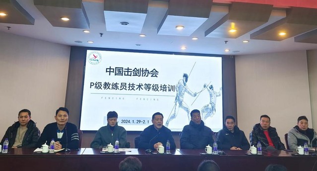 1月29日上午,2024年中国击剑协会第一期P级教练员培训班在紫京饭店隆重开班。原南京体育学院党委常委、副校长,中国击剑学院执行院长金松出席了本次开班仪式,会议由中国击剑学院副院长沈朝阳主持。
