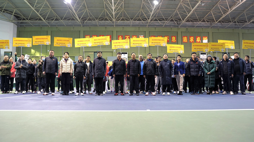 1月7日上午,由江苏省网球运动协会主办,南京体育学院、江苏省网球运动协会高校分会共同承办的2024“双沟珍宝坊杯”在宁高校教工网球团体赛在南京体育学院灵谷寺校区网球馆举行。省网协高校分会会长、南京财经大学原党委书记陈章龙,南京财经大学党委书记张利民、南京特殊教育师范学院党委书记黄军伟,南京财经大学副校长黄步龙,南京体育学院党委书记刘红明、校长杨国庆、副校长鲍勤、原副校长金松参加了活动。