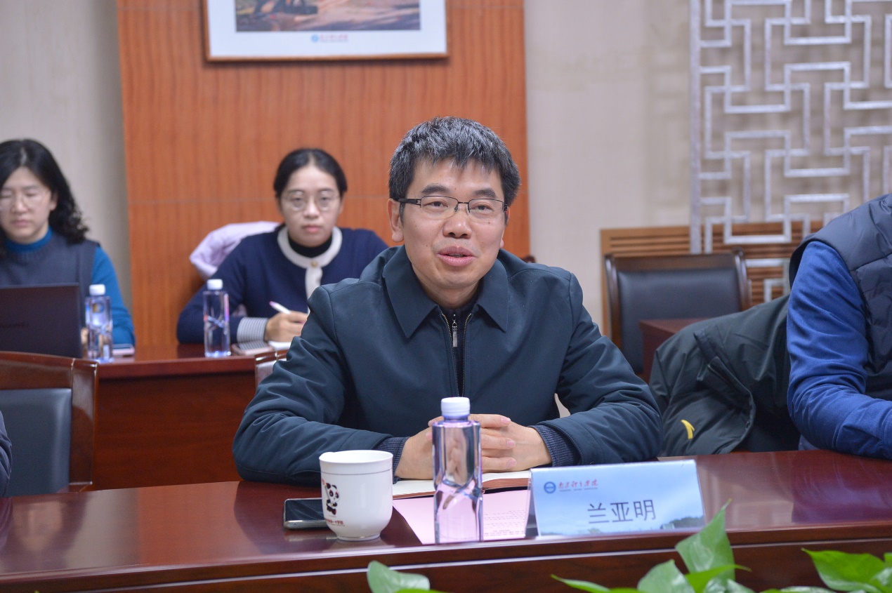 兰亚明首先对刘西忠主席一行的莅临表示热烈的欢迎,对省社科联对我校智库建设工作的支持表示诚挚的感谢。他从位置优越、历史悠久、环境优美和特色鲜明四个方面介绍了我校的基本情况。针对我校决策咨询研究基地建设,兰亚明提出四点要求:一是高度重视,全力以赴,做好基地建设的人财物保障;二是更好对接政府需求,提升决策咨询能力;三是整合人才资源,凝炼研究方向,创新运行机制,努力产出标志性成果;四是扎根江苏省,把成果写在祖国大地上。